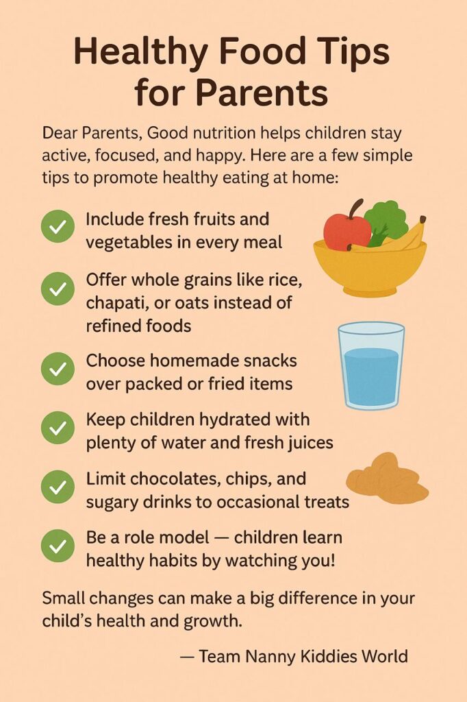 At Nanny Kiddies World, we believe that developing healthy eating habits begins in early childhood. The foods children eat today play a major role in their growth, learning ability, and long-term well-being.